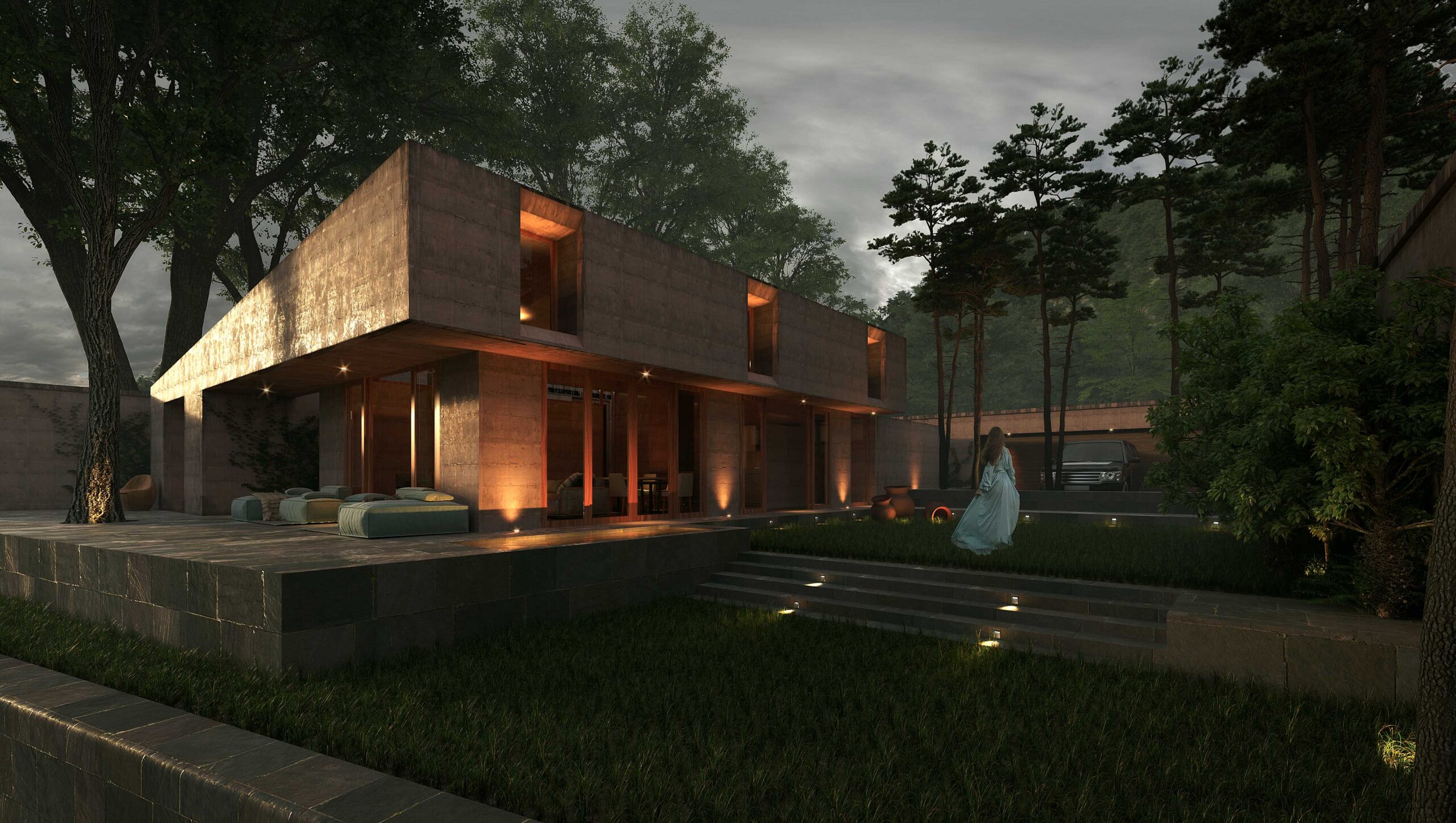 The single-level volume opens up with views towards the internal and external forest of the land and towards the riverbank, prioritizing the privacy of its occupants.
